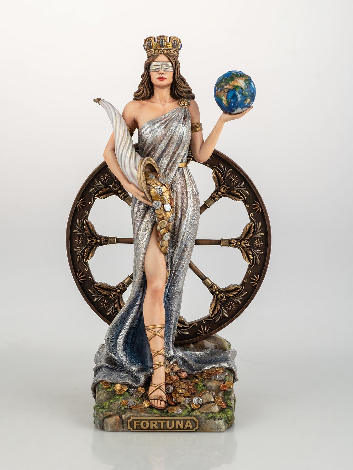 Из рога изобилия Фортуна осыпала избранных материальными благами, богатством и успехом. С повязкой на глазах она дарит успех совершенно случайным людям, но для восстановления порядка вещей имеет колесо.